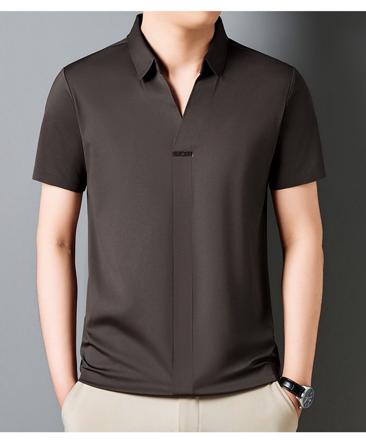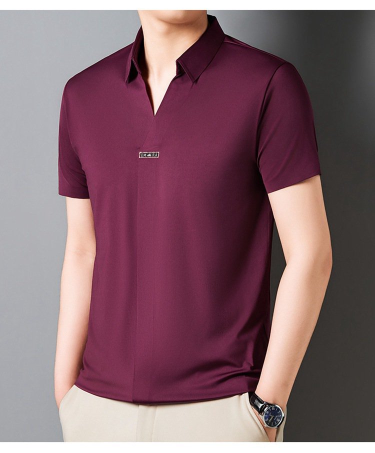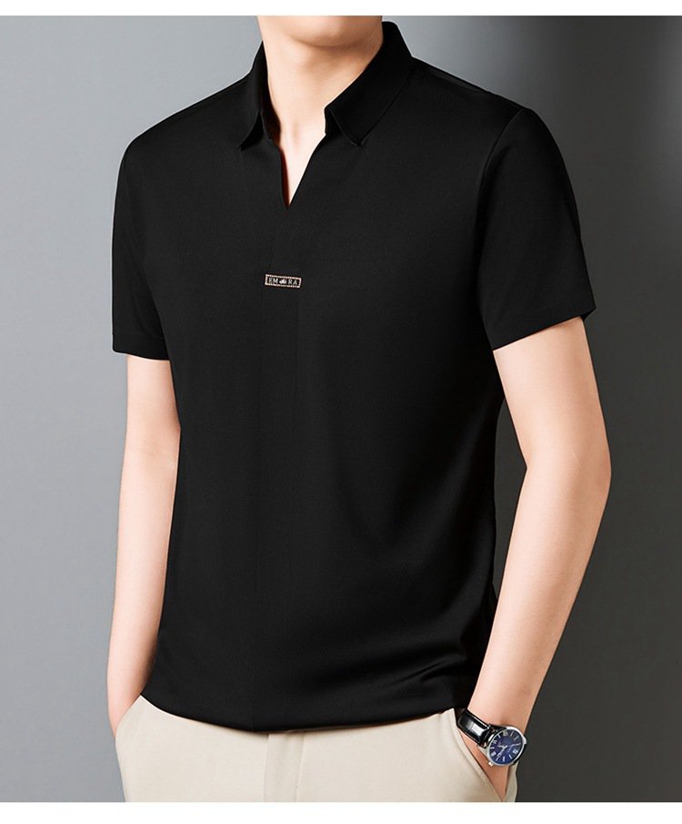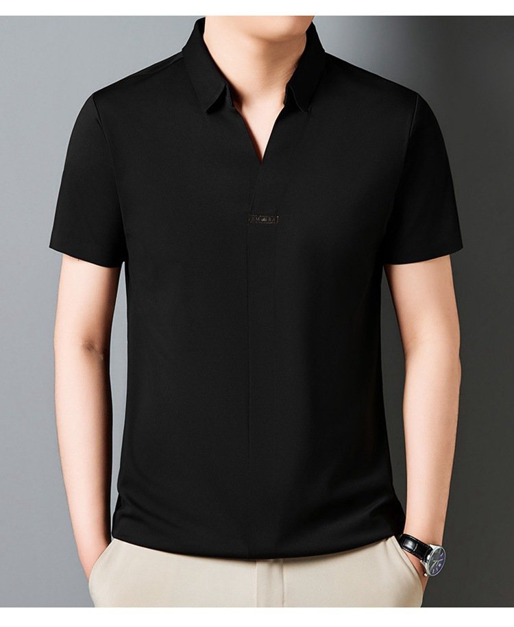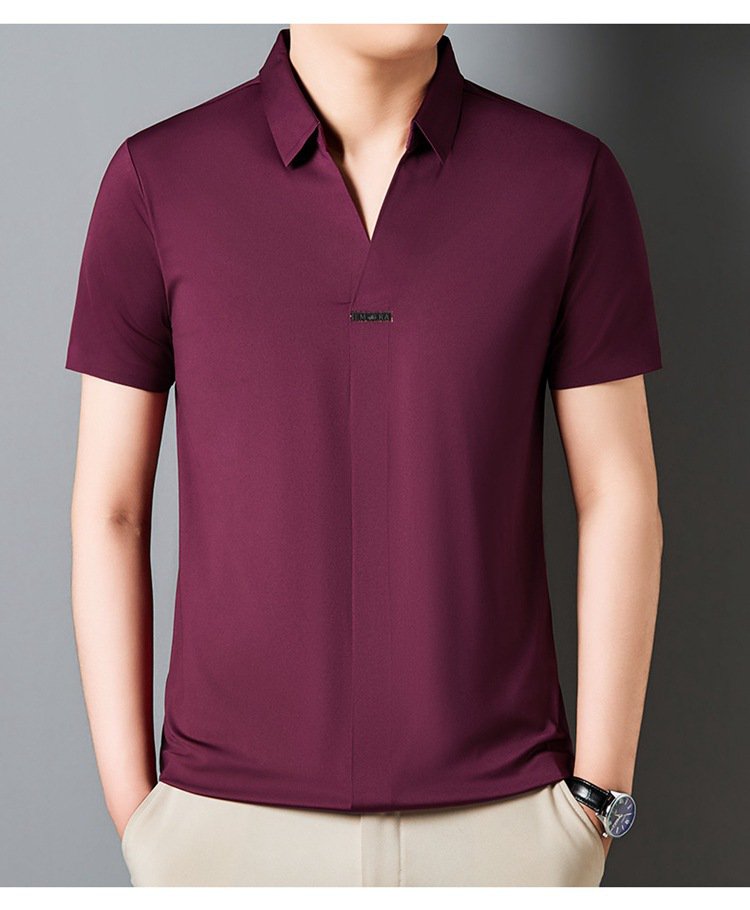 アイスシルク夏のビジネスカジュアルVネックシャツ 半袖メンズTシャツ 伸縮性の高いノンマーキングVネックシャツ