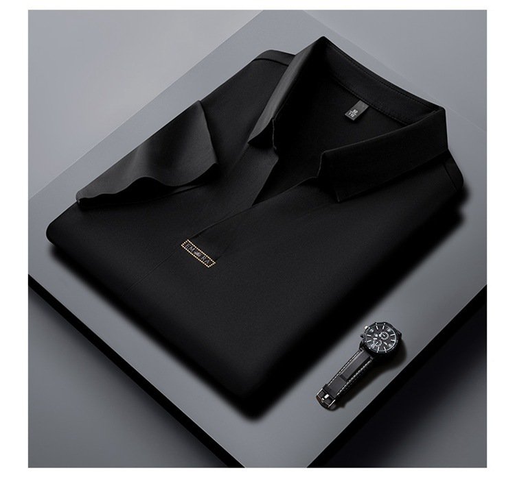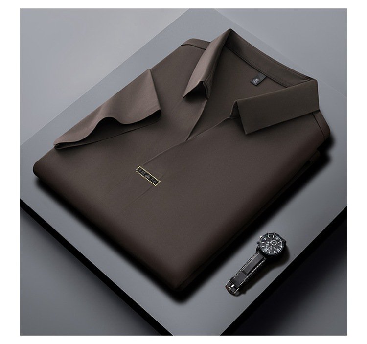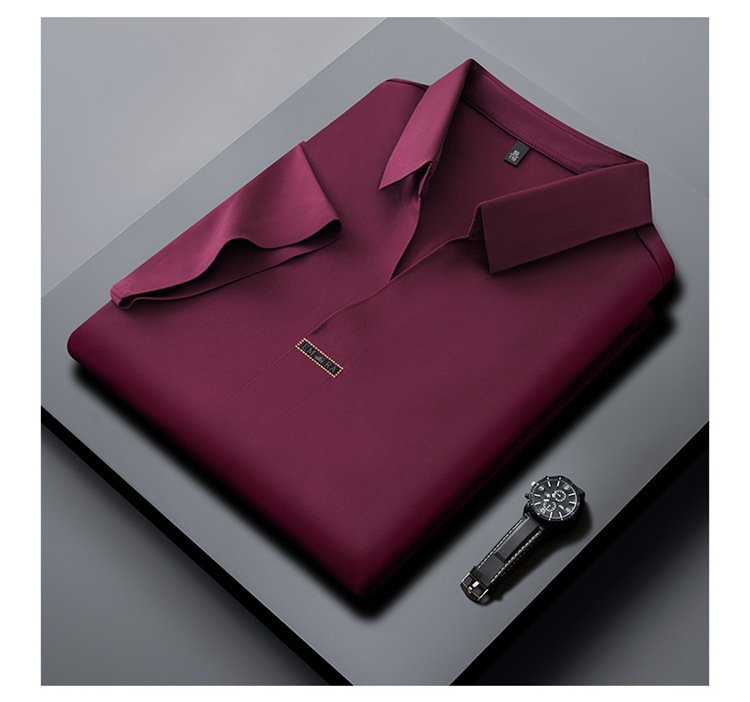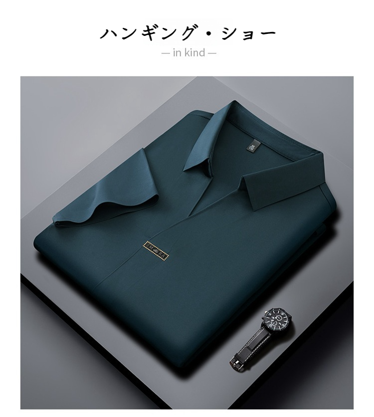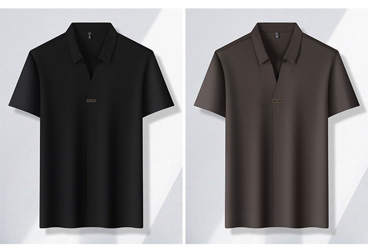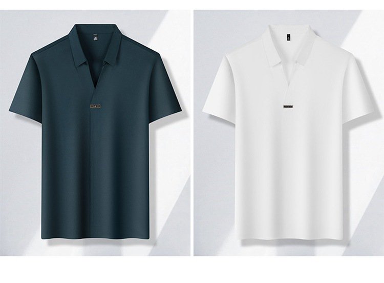 アイスシルク夏のビジネスカジュアルVネックシャツ 半袖メンズTシャツ 伸縮性の高いノンマーキングVネックシャツ