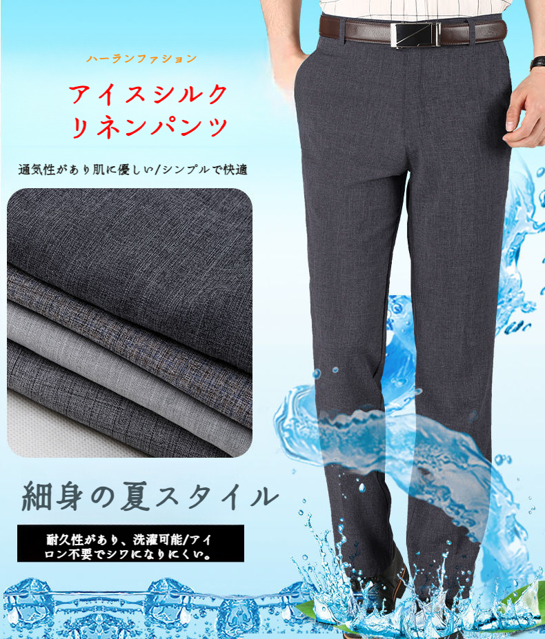 中高年の夏の氷の絹の通気性の男性のカジュアルなズボン ルーズフィッティングパパパンツスーツパンツメンズカジュアルパンツ