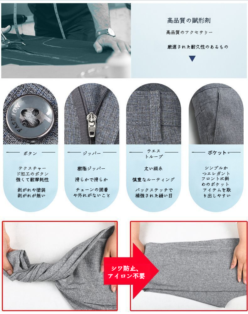 中高年向け夏用氷絹カジュアルパンツ全体画像