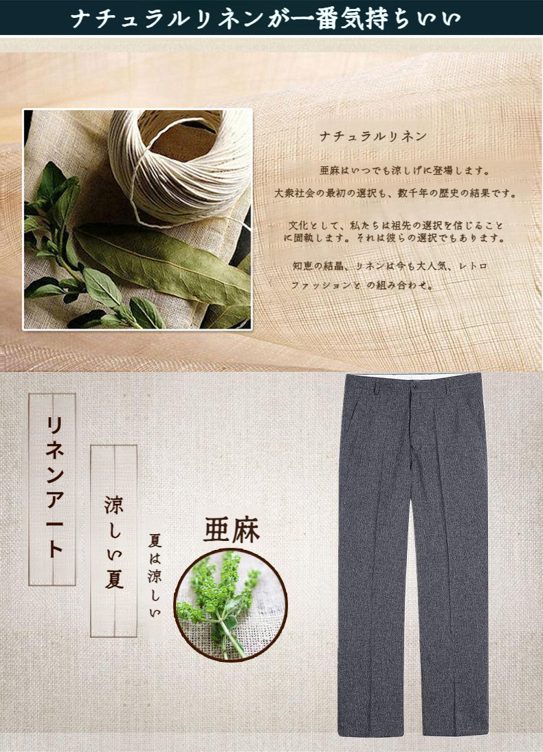 通気性抜群の氷絹素材メンズパンツ詳細